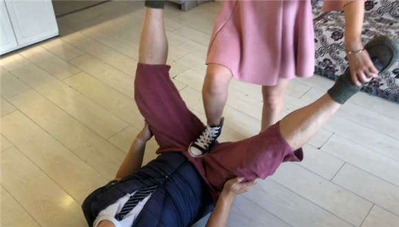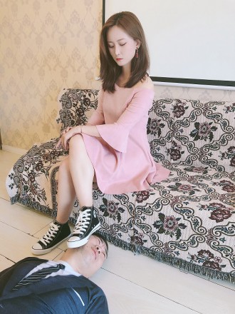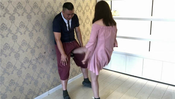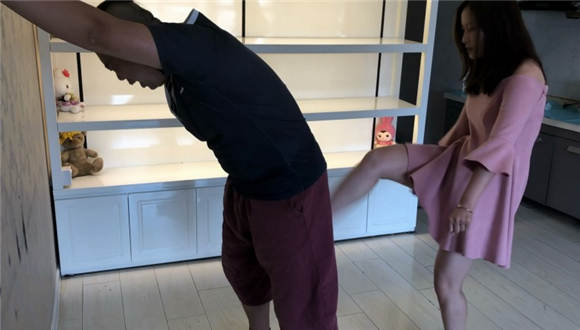 芷琳S身穿一袭粉色连衣裙,脚穿蓝色帆布鞋,对变态M展开严厉的碎蛋和耳光调教,踢服了之后又让男M跪下舔鞋,最后拎起双腿对M下体展开地狱式的狠跺,直至将其跺晕过去。