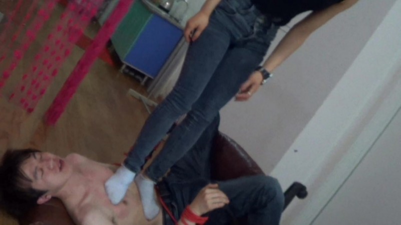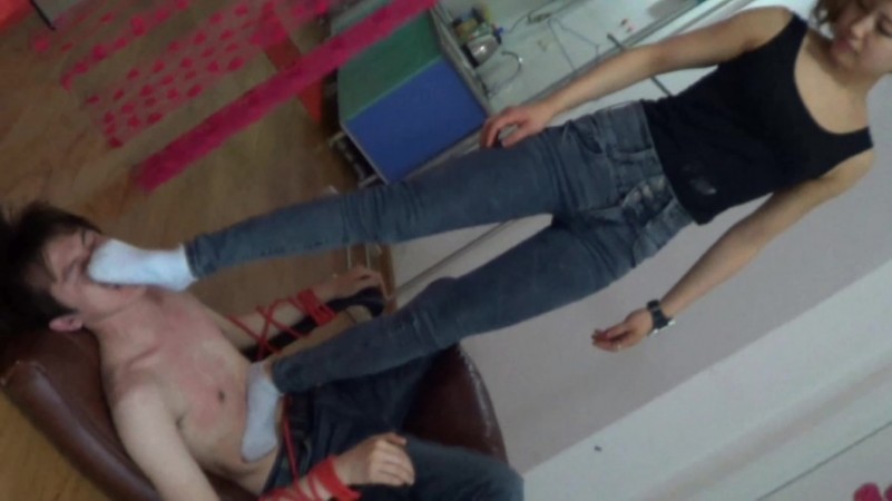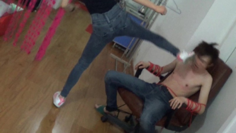 内容:踢裆 下劈裆部蹬踏 踹脸 正反摆腿踢脸捏蛋重拳打下体强迫闻运动鞋 臭袜子羞辱 (少有的臭袜子 还破了个洞)踩踏 耳光审讯用鞋抽还有史上最残酷的膝盖飞顶裆部