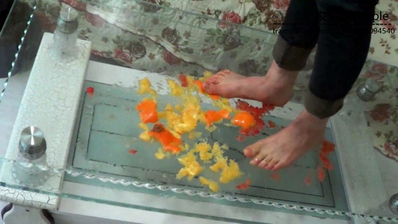 内容:高跟鞋踩压粉碎各种水果,然后光脚蹂躏踩烂榨成水果酱,有站在玻璃上的仰拍视角