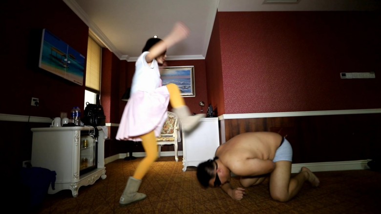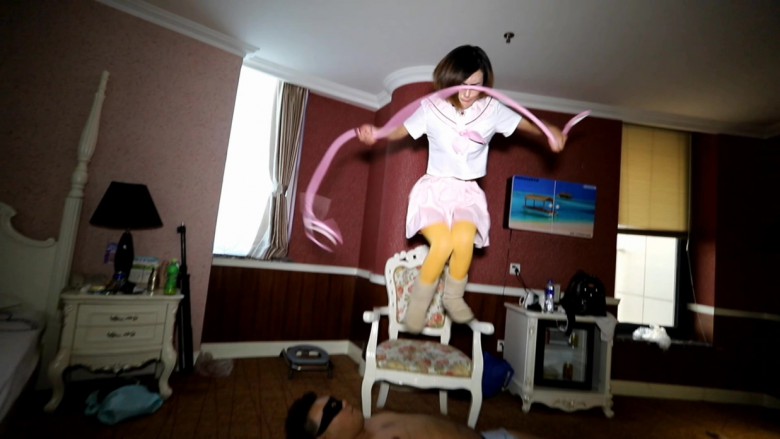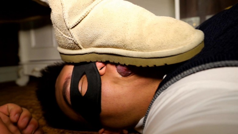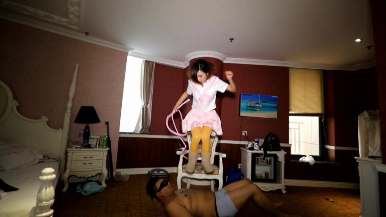 内容:学校小太妹彤彤经常欺负同学,教导主任把她叫到办公室里准备好好教训一顿,不聊尿急就去上厕所,彤彤毫不客气的坐到了主任的位置上,一不小心就发现了主任的秘密。 在主任的文件夹里发现了一些不堪入目的照片 还找到了一双被玷污的丝袜。 黑心小太妹欣喜若狂,在主任回来后以此威胁,主任试图夺回证据,但是彤彤身手矫健,主任根本没机会,只好跪下求饶,彤彤怎么能放过这样的好机会,她羞辱主任,强迫他舔UGG 闻丝袜, 把UGG扣在主任的脸上强迫他闻。 丝袜配ugg 那个臭啊,主任受尽屈辱也没办法,还得舔鞋底,彤彤觉得不过瘾还在鞋底吐痰并且让主任舔,完全激发了主任那下贱的奴性。彤彤趁机拍照打算长期奴役主任。 虽然主任是个下贱的狗奴,但总会条件反射的去管学生的风纪, 彤彤毫无忌惮的点了一根烟 ,主任很自然的就大声呵斥:学生不许吸烟。 结果被彤彤一顿暴踹,然后拿来藤条和皮鞭猛抽,这时候主任才醒过来 ,原来自己是一条狗而已。彤彤的雪地靴又踩裆又踩脖子,狠狠的踹主任的狗头, 最后从凳子上蹦下来连续的跳踩,主任彻底的沦为女学生脚下的贱狗