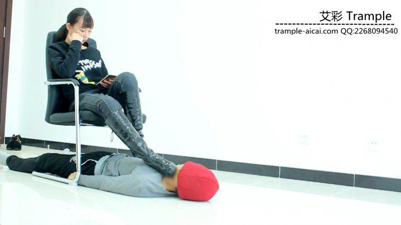骑着贱狗,跨在贱狗脖子上让贱狗驮着自己来回散步,踢翻贱狗全体重踩在贱狗身上,下来用长靴碾踩贱狗下体!