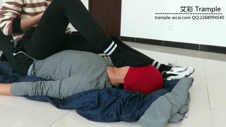 女主坐在贱狗身上,分别用双脚的运动鞋底,踩脚裤棉袜,裸足在贱狗脸上捂脸堵嘴不让贱狗顺畅呼吸,最后坐在贱狗膝盖上用裸足堵嘴!