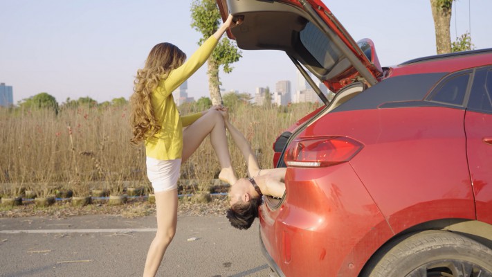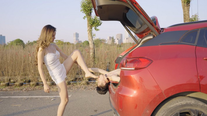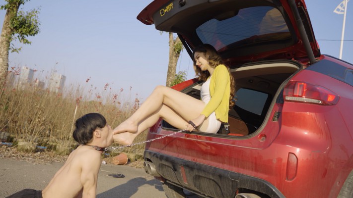 【内容简介】:尔岚姐姐在空旷的户外调奴,坐在车后座上,脱下运动鞋,将满是脚汗的鞋垫强行塞满奴的口腔。