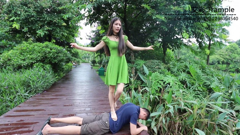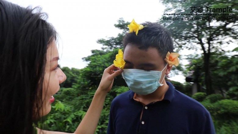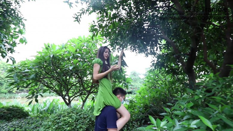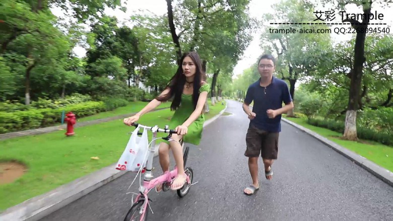 【内容简介】:在公园的园林里,芷晴戏耍起她的小奴。自己骑车让小奴跟在后面追着跑;把鲜花插在他的头上羞辱拍照,又骑着他脖子去摘果子;看到一口水井坏坏地让小奴洗脚,却坐在他身上,把他的头踩进水里、让他舔脚…还有欺负小奴生吃花朵等,随意的调教…