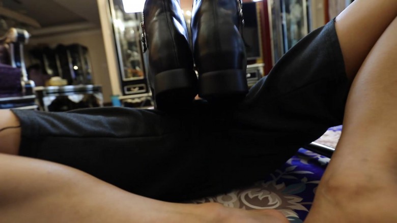 露趾短靴踩在m身上,一步一个脚印;然后全体重踩裆(碾踩、跺)