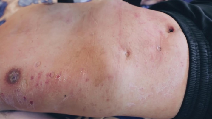 最后下来瘦m的皮肤被鞋跟戳出多道血印,数个鞋跟洞。另外截两张有趣动作的动图给大家