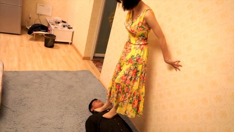 高跟鞋跺踩脖子,窒息踩踏,羞辱。