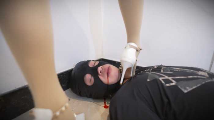抵达证人房间后,影姬先顺势扭断门口守卫脖子,再对证人进行钻胯、丝袜脚插嘴、舔丝足、脚耳光、坐脸等调教。