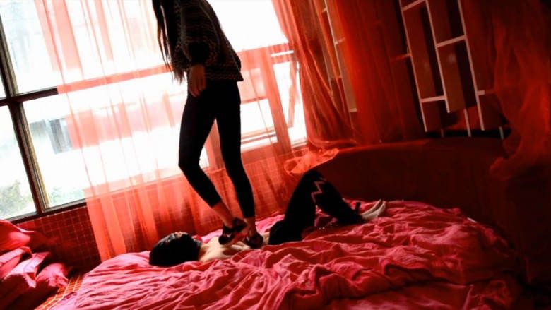 『奴隶岛』—萱萱运动鞋踢踹惩罚按腿奴