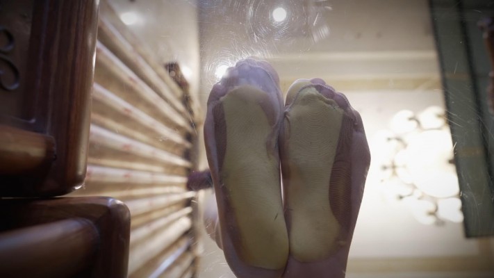 踩扁后麦可颂坐下,从丝袜中倒出面包,再继续踩烂后用脚给m喂食,并让m舔干净双脚。