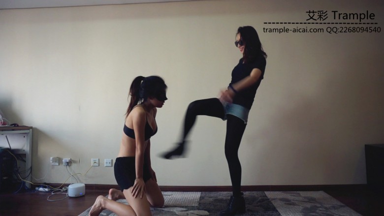 『小妮女女』原味白袜皮靴暴力调教瘦弱女M,踢裆,踩踏,羞辱,闻臭袜子。