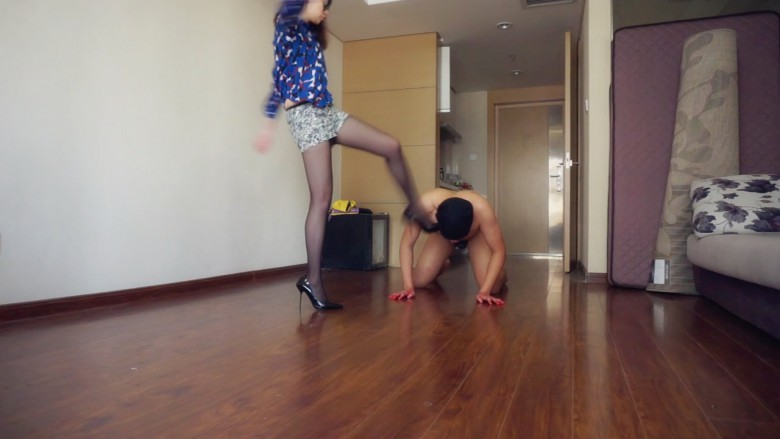 开始,因为鞋跟太细站不稳,踢的比较累,而且贱狗的脸很硬,主题踢到脚背还很疼,也很气愤,就直接用鞋尖踢贱狗的脸,一脚下去贱狗最就流血了,主人看到贱狗血脏了自己的鞋子和袜子更生气,同时也习惯了高跟鞋的平衡,越踢越狠,完全不顾贱狗,嘴里都踢烂了,鼻子也踢出了血,到最后踢的最狠,高跟鞋踢到脸上声音很响亮,而且鞋尖和鞋面踢到脸上声音不同,踢的贱狗都无法说话了,血溅到地板上,这样小妮主人也不放过,一直虐到自己累,近20分钟的暴力踢脸。