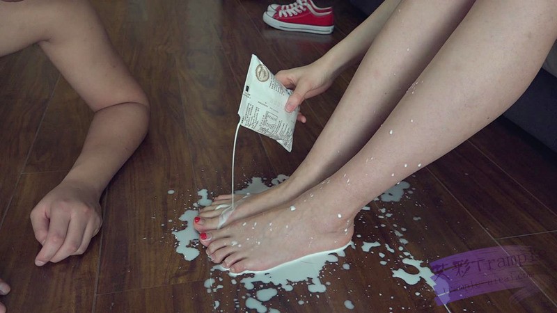 白嫩美脚帆布鞋的蹂躏,喂食牛奶