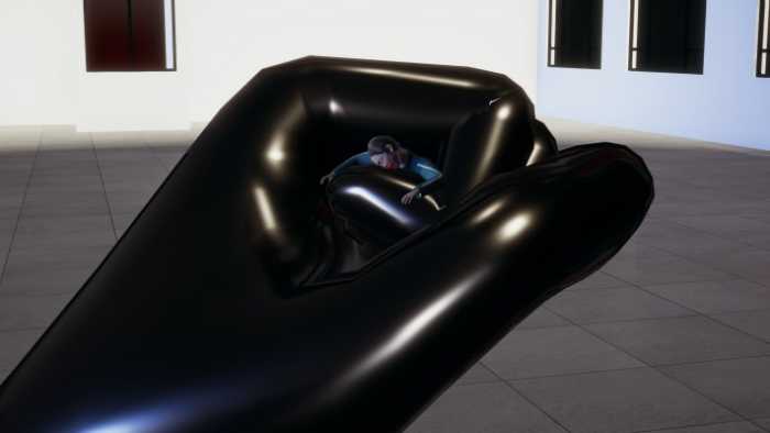 蓝头发的小可把哥哥放在胸上继续玩弄小人! 她把同学拿在手上 用手指戳了几下 之后慢慢的握紧拳头 (身体在手里头在虎口那种感觉)把同学攥死, 小萌看到有个小人在跑 过去用脚踩住之后捏起来 放在手心 拍死。