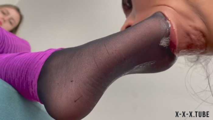 母狗舔得短黑丝湿漉漉,舔得脚发亮 JS250325~1
