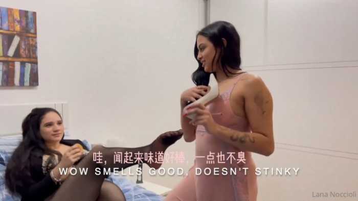 这次用了粉色的中文字幕,我已经被Lana Noccioli这位小姐姐圈粉了,她的视频风格相对来说比较温柔,大多数台词全都是在夸奖鼓励脚被舔的很舒服。