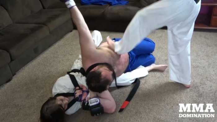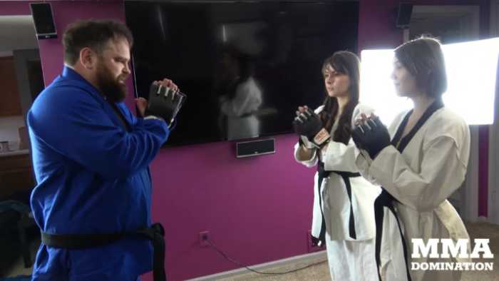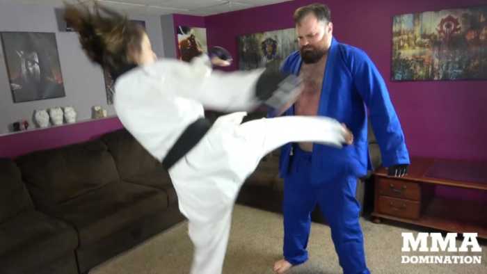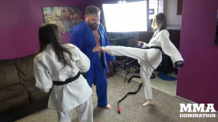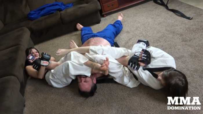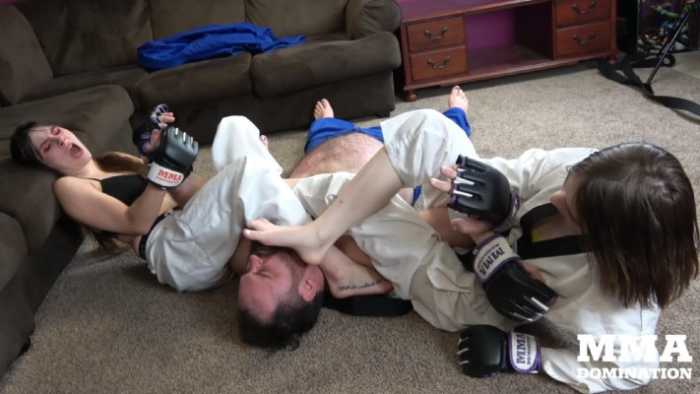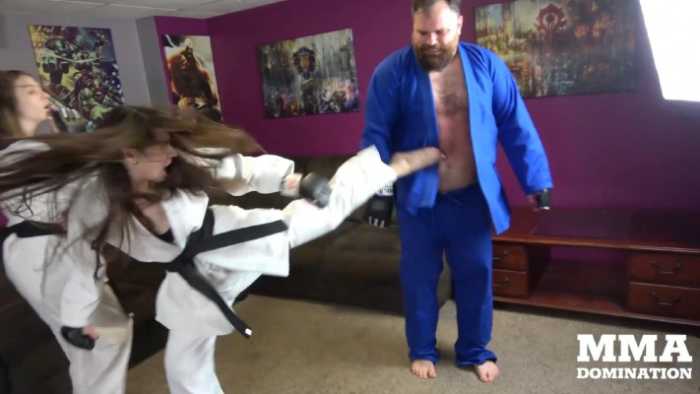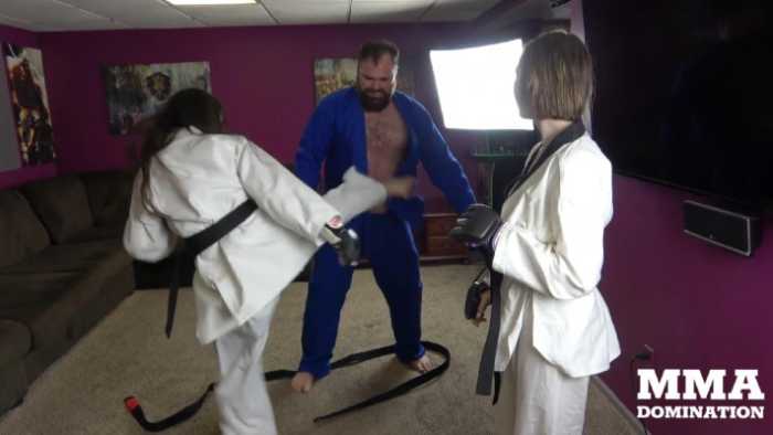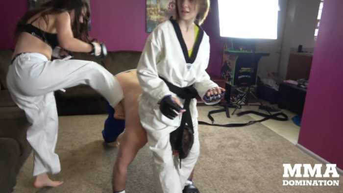 格斗-壮汉被两个跆拳道美少女群殴暴踹后踩在脚下无情嘲笑! JS250907~3