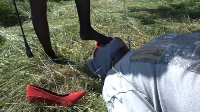 Madeleine女神户外臭丝袜脚调教贱狗!闻舔女神黑丝脚味,惨遭踩踏bf10548