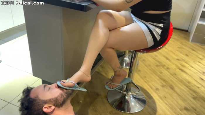 就像某些合租考研却无心学习的人一样。本作的小伙不好好学习,看见合租女室友玩人字拖的汗脚就受不了了,爬过去求求美女,非得帮人家舔脚。美女很忙,没空搭理他,舔就舔吧,别打扰我工作就行。于是小伙躺地上就把美女的人字拖小汗脚舔得一干二净。真不愧是干啥啥不行,舔脚第一名。与女室友合租的朋友们请注意,无论学习还是工作,都要认真对待,好好写论文,专心做工作,不要学他,心猿意马,看见美女的脚就想舔!这是不对的!