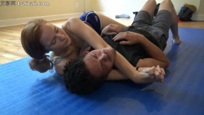 被两个年轻小软妹给打了!踩脖子闻臭脚,绞杀窒息KO太丢人了 O-210621-3