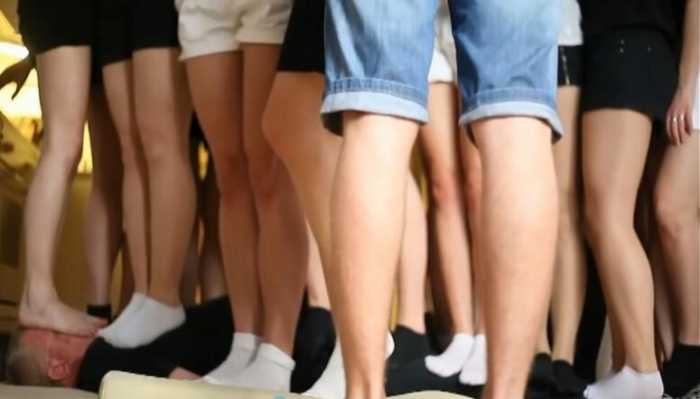 被这么多美女同时踩着是什么感觉,踩头那个超漂亮 bf22131