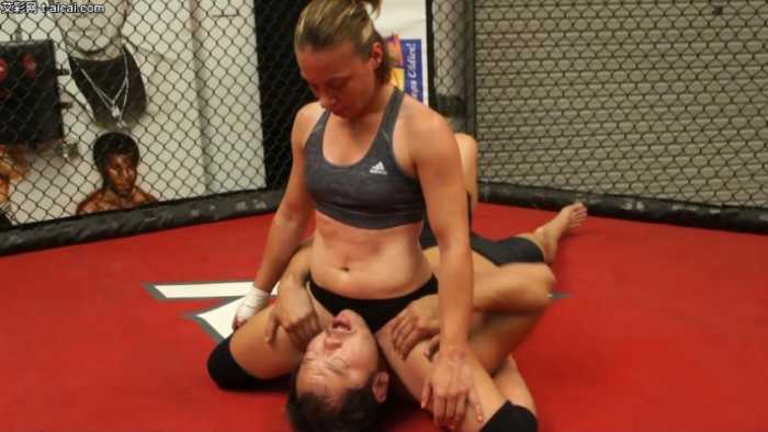 这白妹身体素质真好,爆发力太强了,腿锁脖子都是跳起来凌空锁住,一般人真打不过。。。小伙后来打急眼了竟然差点伸手扒了白妹的裤子,白妹也怒了,后面用腿锁住小伙脖子逆时针全体重自由落体把小伙脖子拧了90度,太吓人了这个动作,要知道,腿锁住脖子后全体重自由落体做这种动作,很有可能直接让这小伙颈椎脱臼全身瘫痪的。。。用这种招数看来是真的是急眼了。。。白妹把小伙KO后,还把他踩在脚下奚落了一番,火药味特别浓。