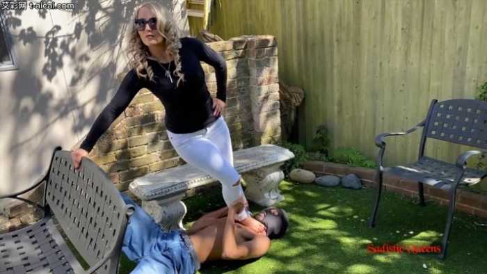 残忍美丽的Courtney女神,平底鞋臭汗脚照着黑人小伙的脑袋疯狂跺踩,全体重用脚尖站在小伙的脖子上,脚趾尖深深戳进喉咙的部位,把小伙脖子踩扁到了令人恐怖的程度。。。更过分的是,她竟然踩在小伙的脸上做蹲跳起,跳起和落下的一瞬间仿佛都能听到小伙头骨碎裂的声音,可怜的小伙脑瓜子都快被她踩碎了。。。这个女王实在太狠了,谁想被活活踩死的话找她就对了。。。