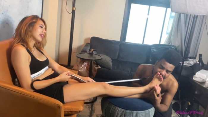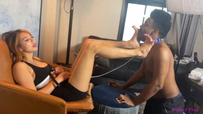 高贵韩裔Kim女神原味汗脚调教小黑!臭脚踩脸踹脸脚深喉舔原味脚JS250118~1