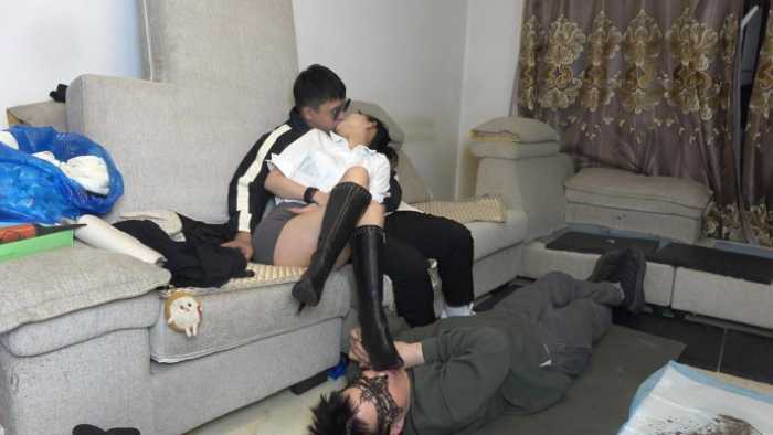 情侣主一边亲热一边脚下贱狗舔脏鞋底,无视脚下贱狗,情侣之间打情骂俏亲热完全不顾贱狗感受,偶尔口水奖励贱狗。