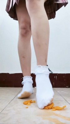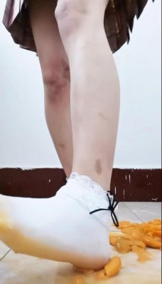 【文件预览及介绍说明】:线上模特小兰jk花边棉袜踩橘子做狗粮,有跳踩、踮脚踩、脚趾夹踩和脚底展示。小兰小姐姐腿很白嫩,脚小小的,温柔可爱。