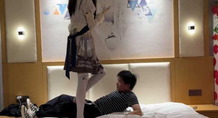 【喵咔】lo丨踩头丨lolita白丝帆布鞋全体重踩头踩档16分钟 ACYC-4657