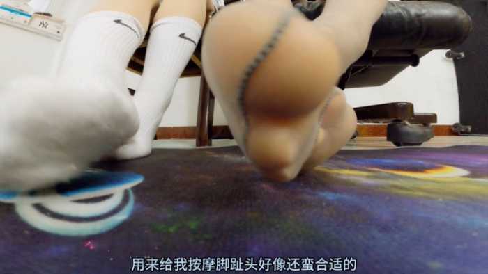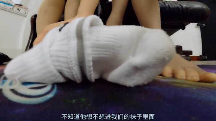 我们只需要轻轻的用脚这样碾压 你就会成我们脚下的肉饼 成为我们脚下的肉酱 那毕竟在我们巨大的脚下这么的渺小 就像一只小蚂蚁一样 又脆弱又渺小 把你的袜子脱了 让他好好玩一玩 再看看他喜欢的 他特别喜欢闻我们的臭脚味啊 你看看给他 嗯给他香的