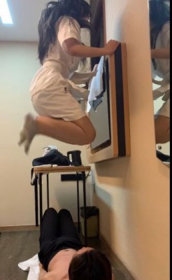 高空跳踩骨裂-120斤跆拳道女孩高空跳踩,被跆拳道学生妹踩断肋骨 YC-220501-8