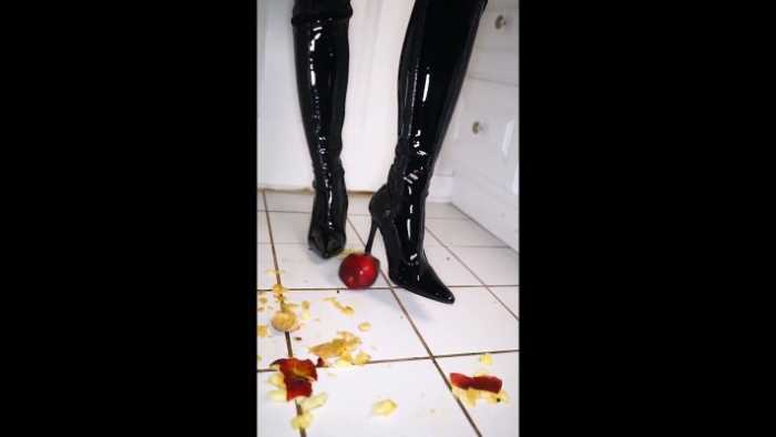 黑色尖头细跟漆皮长靴碾碎踩苹果 JS251008~3