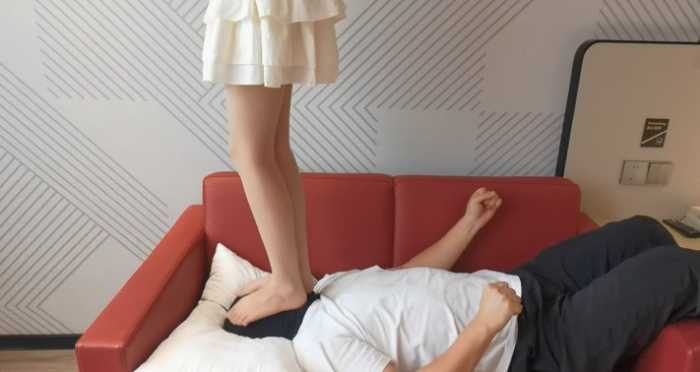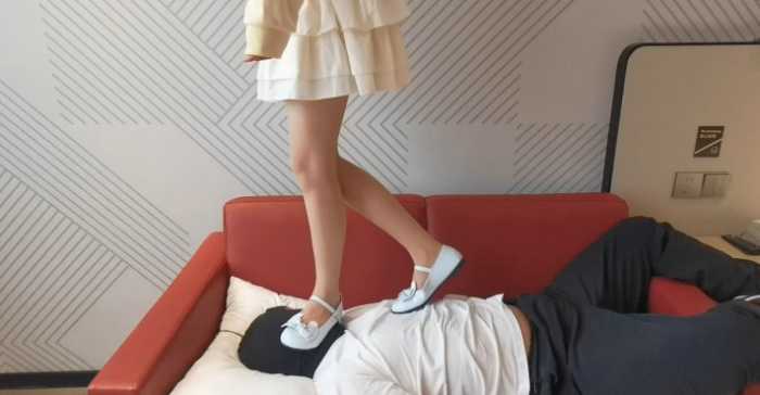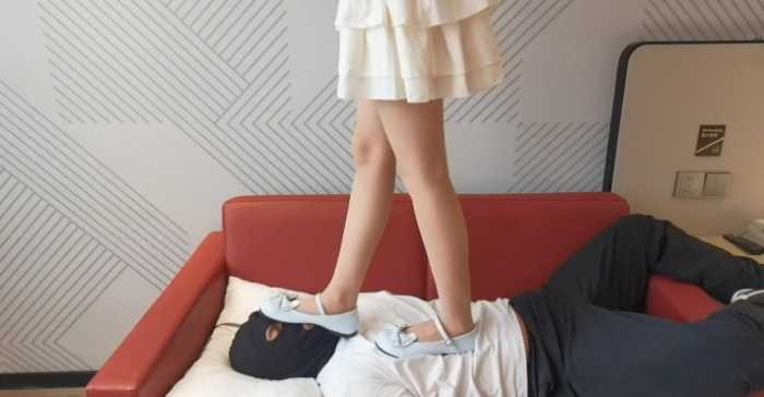 萝莉鞋的鞋底真的很硬,比以前那种舞蹈鞋硬的多,没踩多久毯子就感觉火辣辣的疼了,拍完毯子摘了头套毯子脸上有红印,而且这次女高像黏烟头的样子在那里用脚碾毯子,可以看到毯子的面部变形严重(嘴巴那里露出来了),而且骨头也很痛,因为是直接用脚尖在碾,在头上双脚施压,用脚跺头
