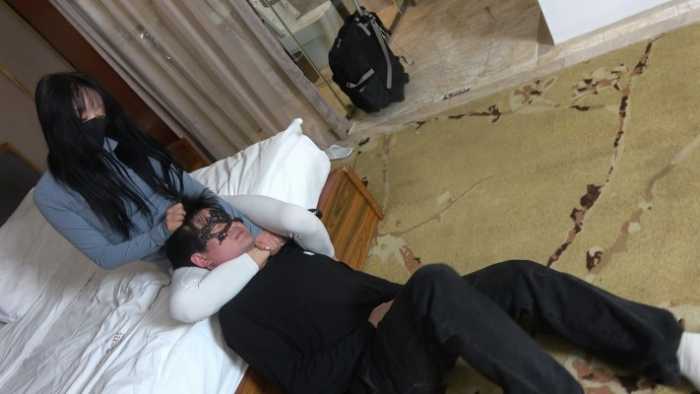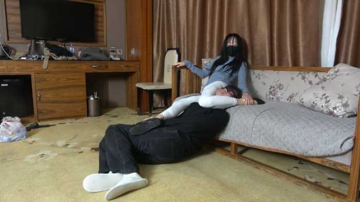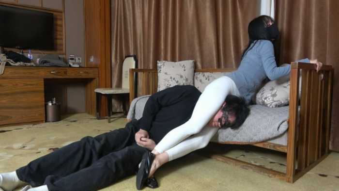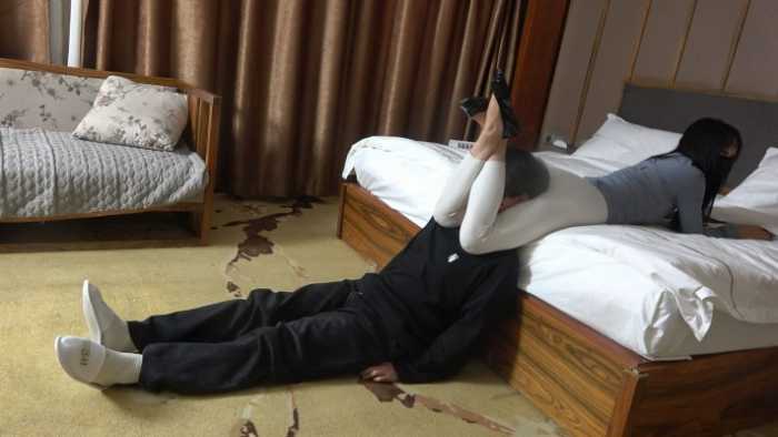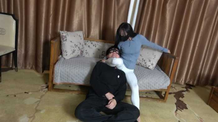 白色瑜伽裤腿绞窒息,死亡翻滚,各种姿势腿绞,大声嘲讽,得意,羞辱。