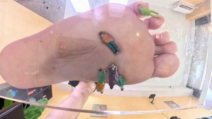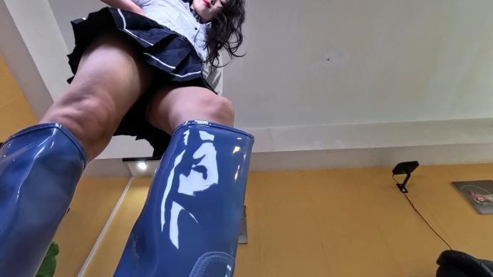 【文件内容】:雨靴裸足,玻璃视角,入鞋