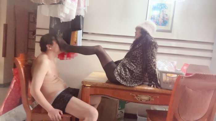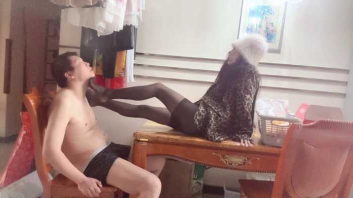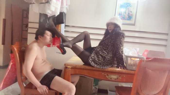 日常调教,地点餐桌,黑丝高跟诱惑毯子踩踏玩乳头,彰显诱人大长腿~