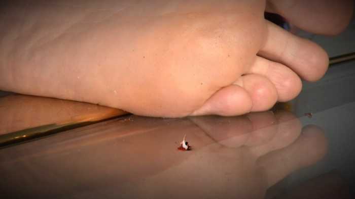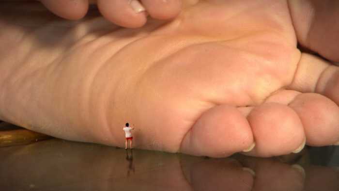 下贱的微缩脚奴服侍女主人的臭脚,搓脚垢脚泥,最后还被女主无情的踩死