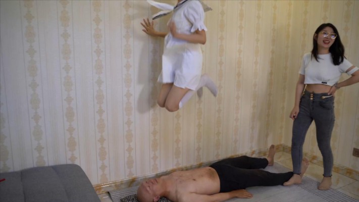 【内容简介】:圆圆、绾儿、冷凝,三位女主站在两M身上一顿狂踩,踩的青龙都吐了出来。两只脚分别站在了两个M的头上,圆圆蹦的最高。更多精彩内容请购买观看。