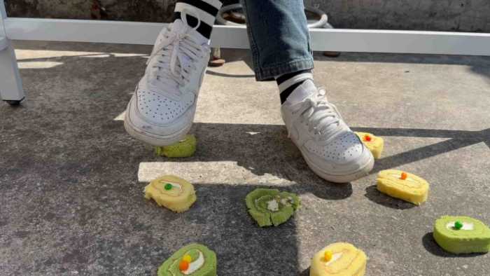 我叫大鹏,后座的大美是公认的班花,好喜欢她,自从上次不小心把铅笔掉在地上后,捡笔的时候看到了她的鞋底,近在眼前,淡淡的香味还有,肮脏的灰尘,这么爱干净的女生居然有这么脏的鞋底。自那以后我就经常故意把笔扔在桌下。奇怪,大美的脚下?瑞士卷?已经被踩得黑黑的了,她还在无意识碾动脚踝,哇,好想,吃一口…..可….现在是在上课……也许偷偷尝一下,也不会被发现的?……