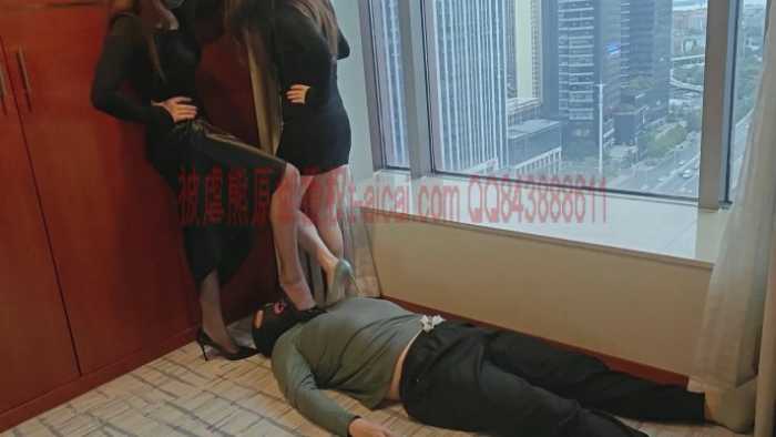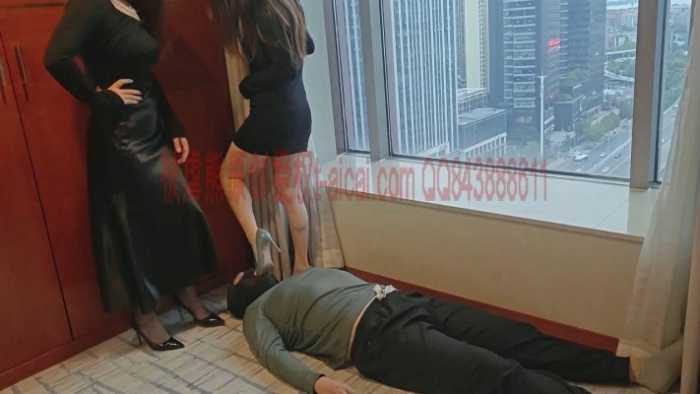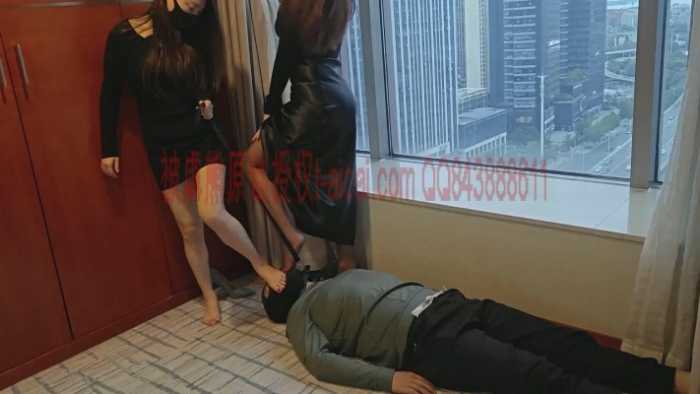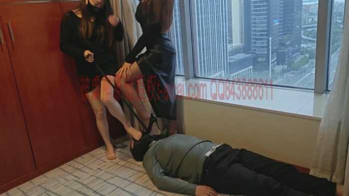 「被虐熊原创」黑寡妇双煞双主酒店落地窗前脚虐被虐熊,黑丝+裸足高跟踩踏,脚垫+深喉,羞辱感极强。