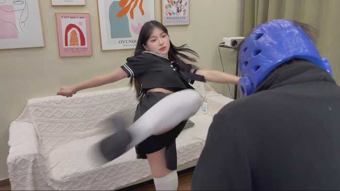 【影片预览及介绍说明】:给小缘来当沙包吧~痛也要忍着哦~不会把你踢爽了吧…看着我的脸被我踢是一种享受吧~嘻嘻~最后狠狠的踩你的脖子把你踩昏!!!