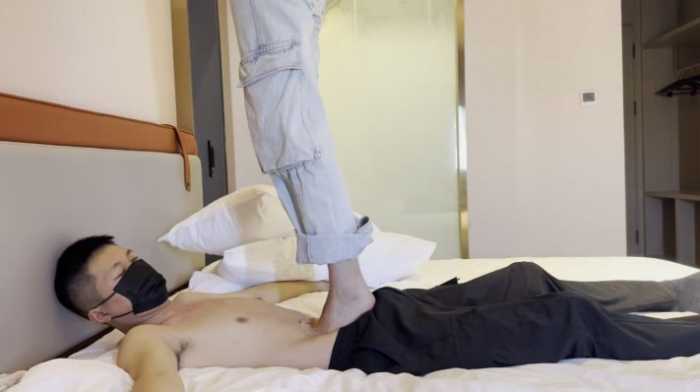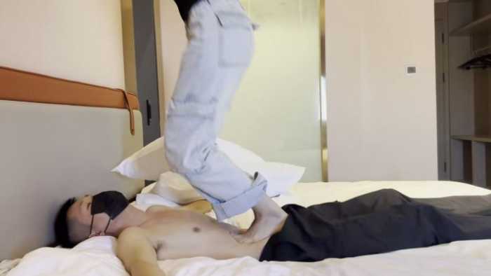 新人女生:小瑶,哈萨克族,身高173,体重108斤 ,脚码:38 成功让音乐生小欢带她闺蜜来踩了,长得非常漂亮,如果不是事后小欢告诉我,完全看不出是哈萨克族。第一次尝试光脚踩踏,前面比较温柔。因为看过小欢,所以有经验,一开始跳踩的不高后面也是一次比一次高,基本上不用怎么教还有全体重踩脖子和单脚踩肚子