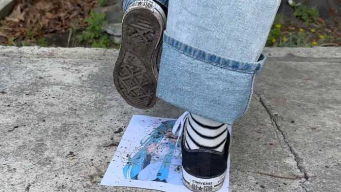 定制这个视频的贱狗的女神是二次元的初音未来,希望我穿着最脏的匡威鞋,在脚下把他女神的脸剁碎撕烂,然后寄给他~
