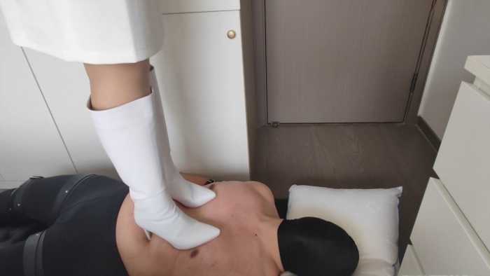 【文件预览及介绍说明】:白色长筒靴全体重踩踏地毯,一个多月没踩,毯子又不抗踩了,只坚持了10分钟就不行了