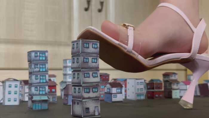 中韩混血踩小人巨作!gts城市摧毁巨人视角女巨人特效高跟鞋踩死