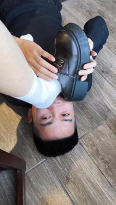 爱可小皮鞋玩男M 舔鞋底踩踏 闻白袜 JS260429~5