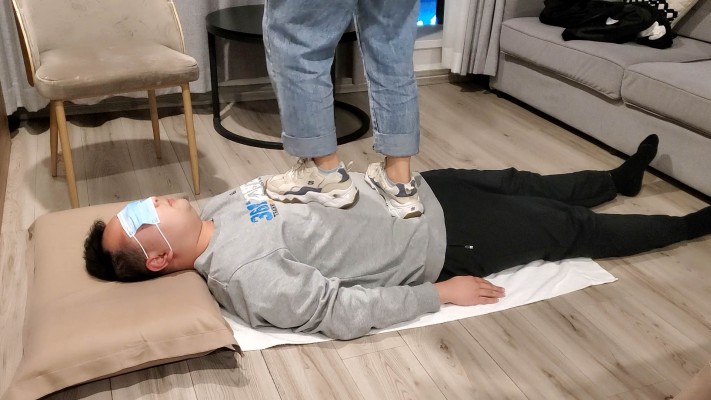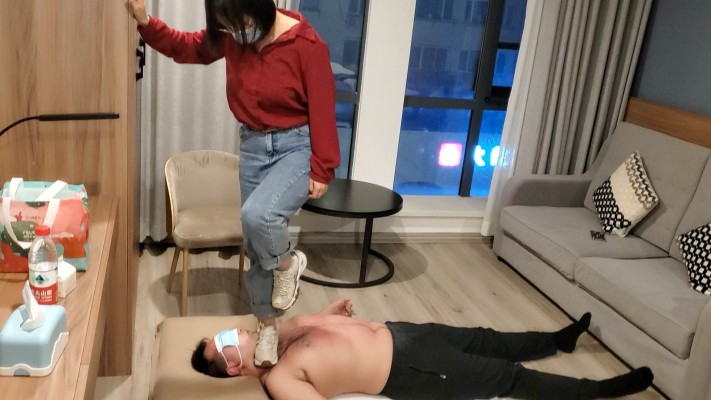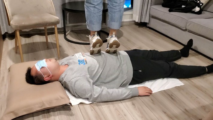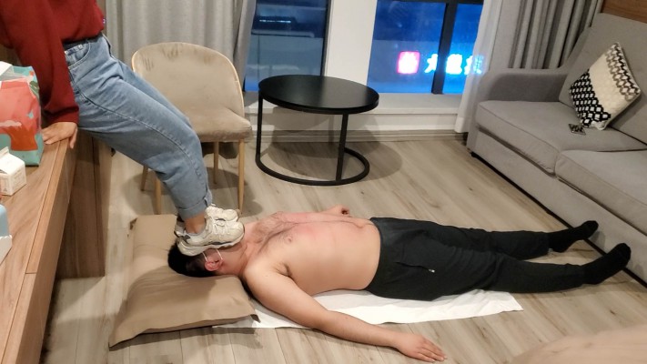 一部库存的现实视频,时间比较长,无多视角充时间全程踩踏,纯现实踩踏,有对话。视频主要分三段,第一段属于热身阶段,在毯子身上全体重踩踏再到慢慢踏步到全体重踮脚尖踩踏,逐渐加大强度。第二阶段让毯子脱下衣服在毯子身上跳舞,完全无视毯子。还有全体重踩脖子以及踩头内容。第三阶段脱鞋棉袜踩,主要以踩脸以及全体重踩脖子为主,还有踩脸窒息的内容。总之是一部十分真实的现实视频,内容丰富~