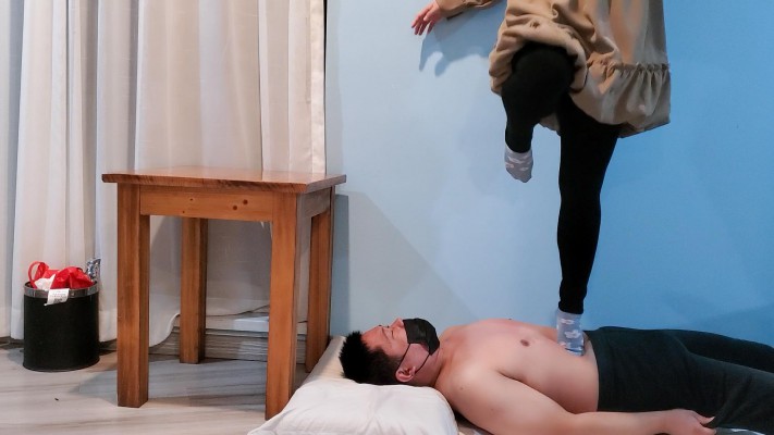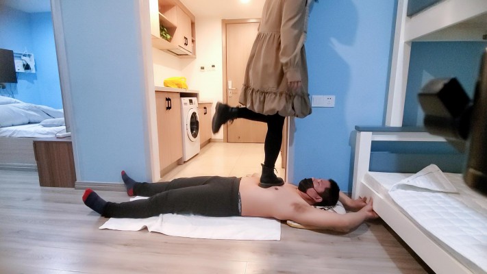 视频分前后两段,前半段穿皮靴各种踩踏。包括高抬腿跺腹,单脚单腿跳,助跑踩,超高跳踩等,玩的十分开心,看截图的残影就知道了,鞋底很硬一脚一个鞋印。个人感觉跑步冲刺踩过去的感觉很棒。后半段就是酒店拖鞋和棉袜踩了,踩脸比较多,总之时长很长内容丰富,大家放心冲~截图不全,大量精彩内容在视频里自己看吧~